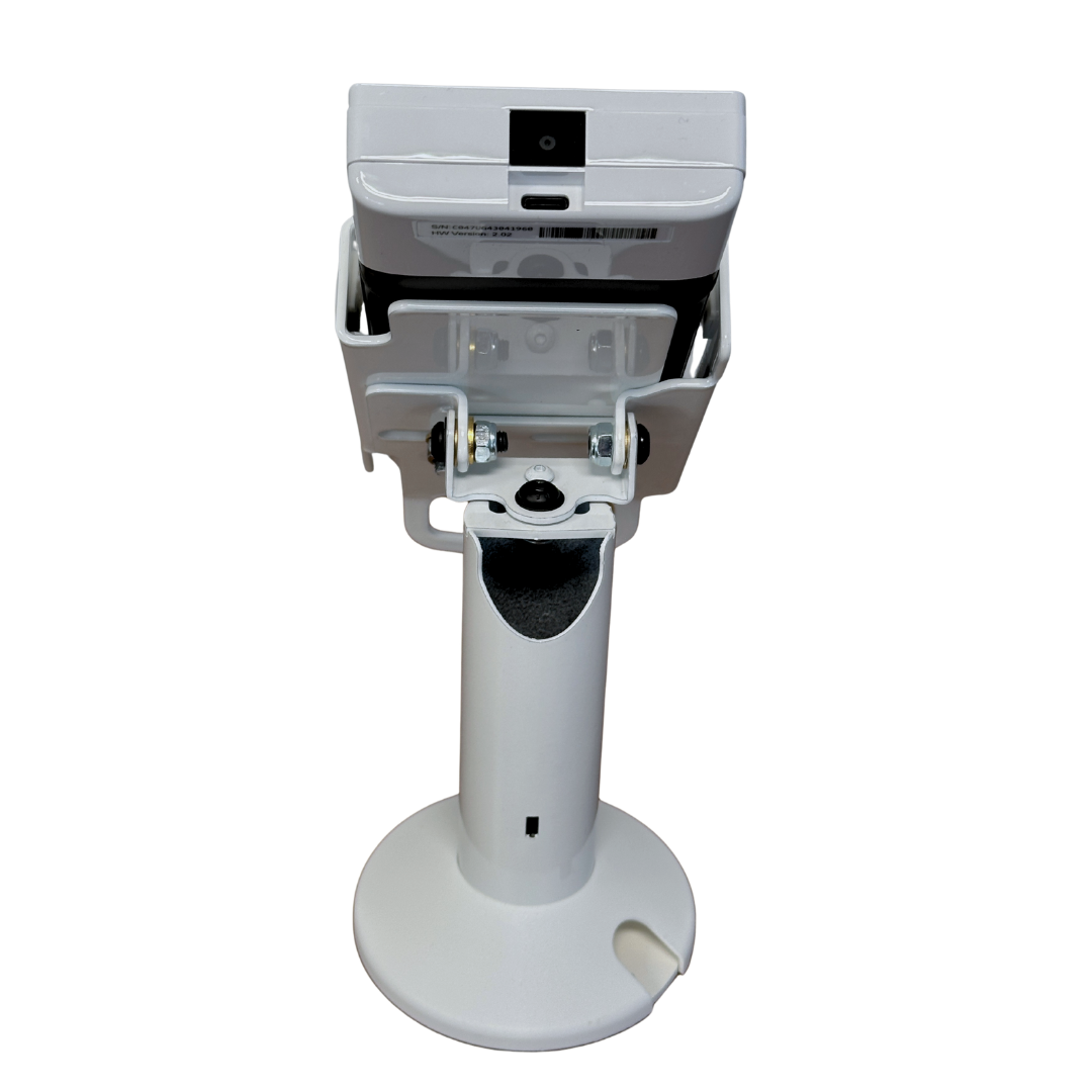 - Stand allows for seamless customer interactions with less danger of harm to equipment; flange cover hides wires and mount keeps terminal secure for minimized chances of damage and theft to POS terminal; durable powder coated finish protects stand