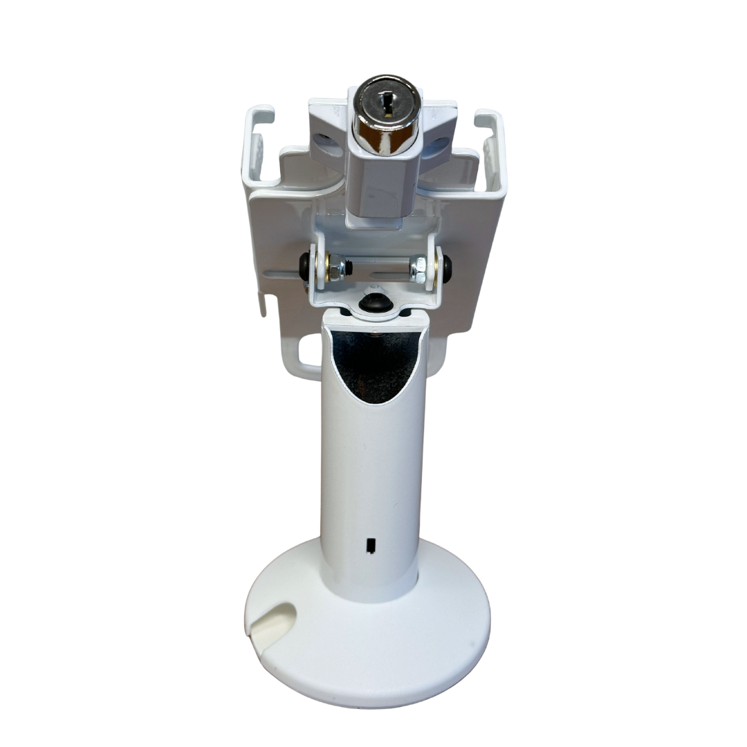 - Swivel and tilt stand is supplied fully built for a simple installation; two easy installation methods; includes screws and an adhesive pad for two options of securing holder; terminal not included; fits Clover Flex Pocket ; pole stands 5.5” tall